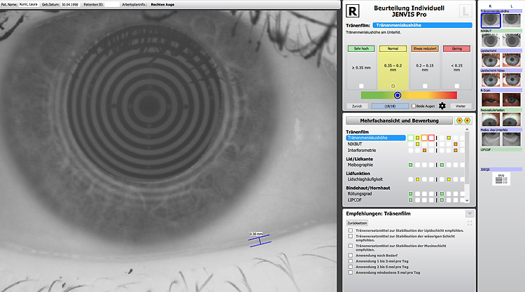 zum Symptom des trockenen Auges. Der Schlüssel für die Analyse der verschiedenen Benetzungsstörungen, sowie Ermittlung ihrer Ursache liegt in unserer Hand. Durch Screeningtests mit der Spaltlampe (Mikroskop) und dem Dry Eye Report analysieren wir die Störungen des Tränenfilms und dessen Schichten.